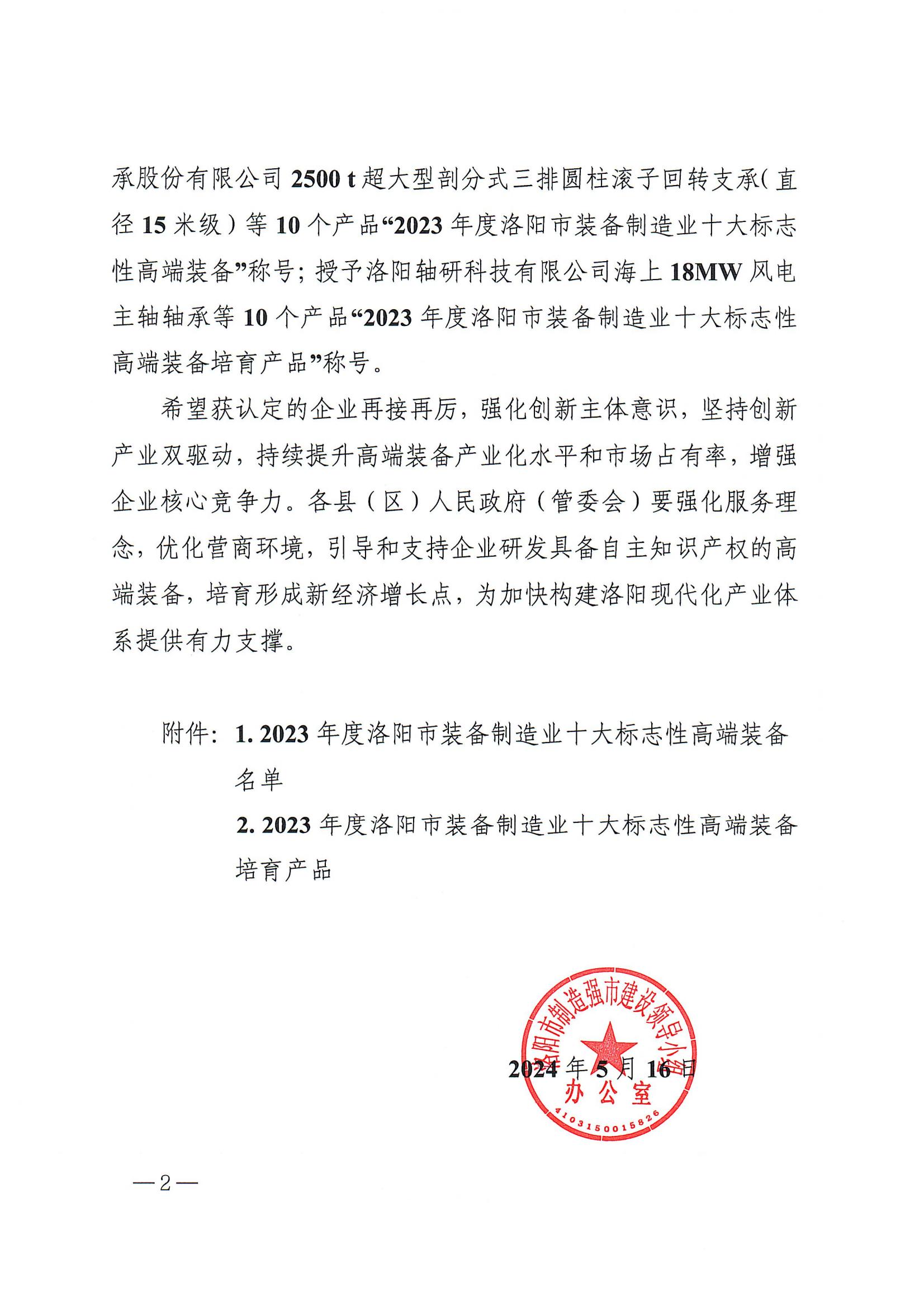 祝賀兆格環(huán)保獲2023年度洛陽市裝備制造業(yè)十大標志性高端裝備培育產(chǎn)品認定