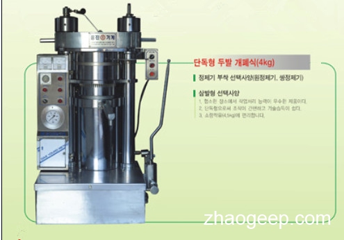 上世紀(jì)90年代,韓國(guó)人成功研發(fā)并生產(chǎn)了快速液壓香油機(jī),又稱為韓式香油機(jī)。該機(jī)型主要采用液壓油缸,采用油線式料筒,充分改變了傳統(tǒng)的古法壓榨香油工藝,使芝麻經(jīng)過篩選、炒制、除煙之后直接壓榨成香油,效率非常高。同時(shí)一次可以加工幾斤到10幾斤不等,加工一次時(shí)間8-10分鐘,用戶購(gòu)買芝麻可以現(xiàn)場(chǎng)加工,一方面確保所榨香油為新鮮香油,另一方面用戶自己購(gòu)買芝麻或種植芝麻可以隨吃隨榨,最重要的是現(xiàn)場(chǎng)壓榨從很大程度上解決了香油摻假的問題,一經(jīng)上市深受廣大用戶喜愛。