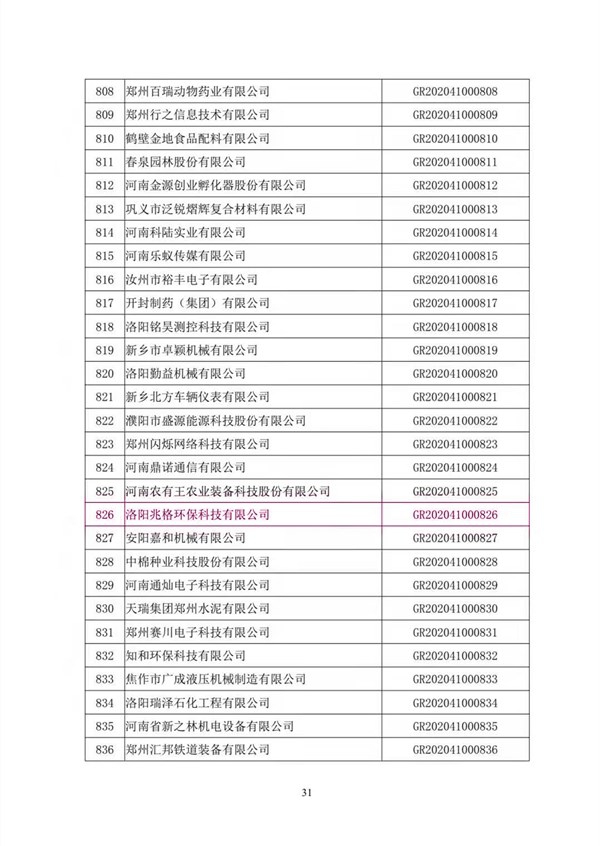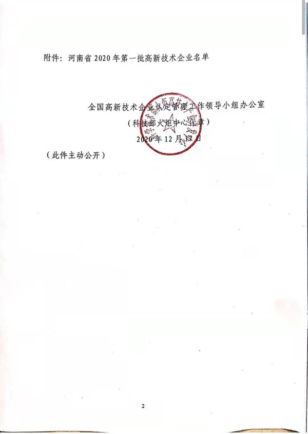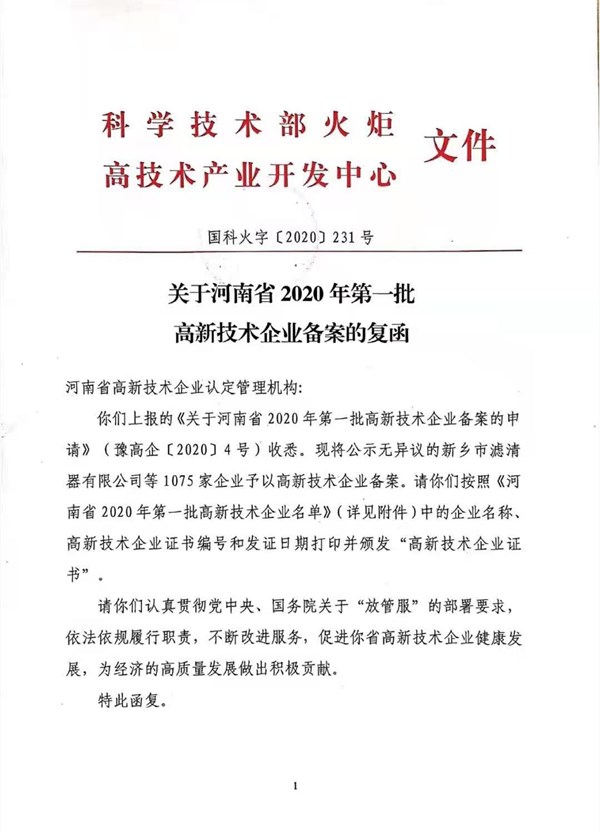 洛陽兆格環(huán)??萍加邢薰咀?018年開始籌備高新技術(shù)企業(yè)培育工作,高新技術(shù)企業(yè)認(rèn)定伴隨著企業(yè)發(fā)展,經(jīng)過3個(gè)年度的努力,2020年6月兆格環(huán)保提報(bào)了2020年一批次高新技術(shù)企業(yè)認(rèn)定審核,并且順利通過。2020年12月科學(xué)技術(shù)部火炬高技術(shù)產(chǎn)業(yè)開發(fā)中心復(fù)函,自此兆格高新技術(shù)企業(yè)編號(hào)確定為GR202041000826。高新技術(shù)企業(yè)證書于2021年1月領(lǐng)取。