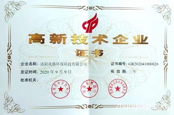 熱烈祝賀洛陽兆格環(huán)保科技有限公司獲得"高新技術(shù)企業(yè)”認(rèn)定