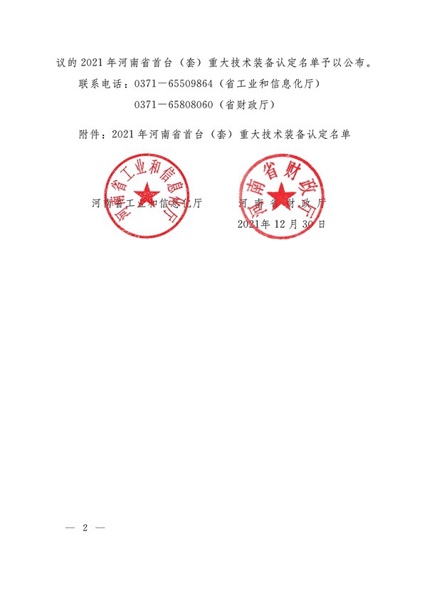 河南省首臺(套)重大技術裝備