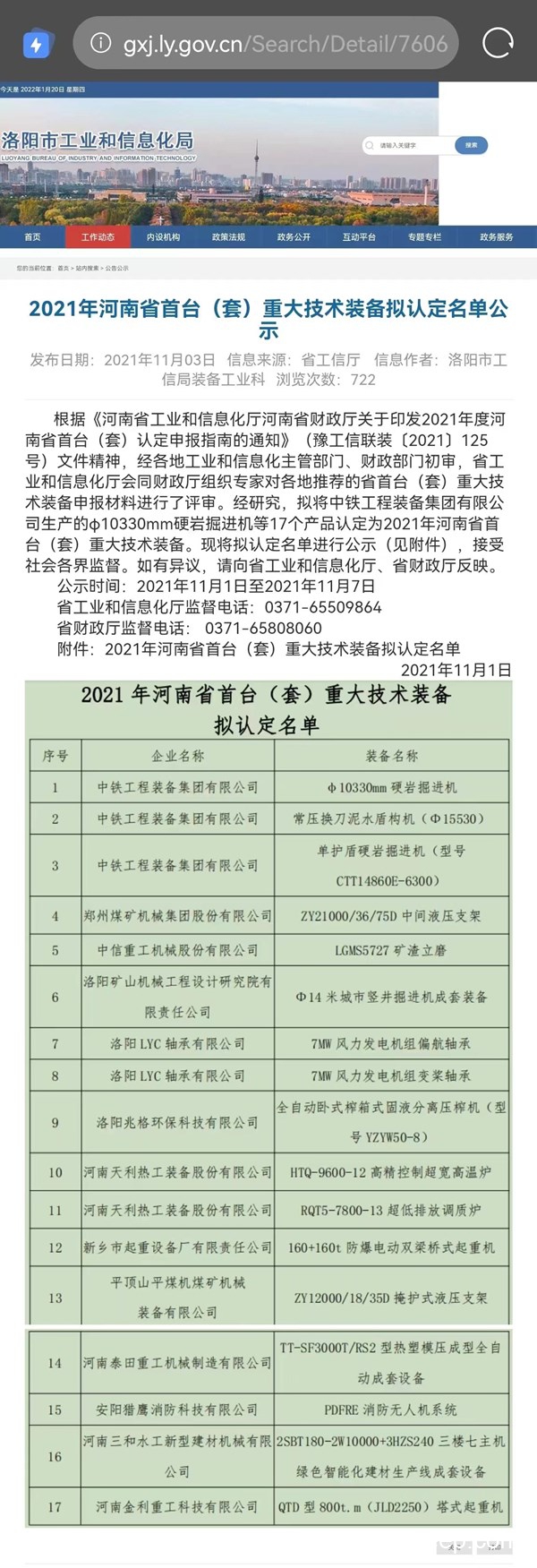 河南省首臺(套)重大技術裝備認定2021年認定成功17家,是近幾年認定較少的一年。洛陽市有5家,其余四家均是大型國企。